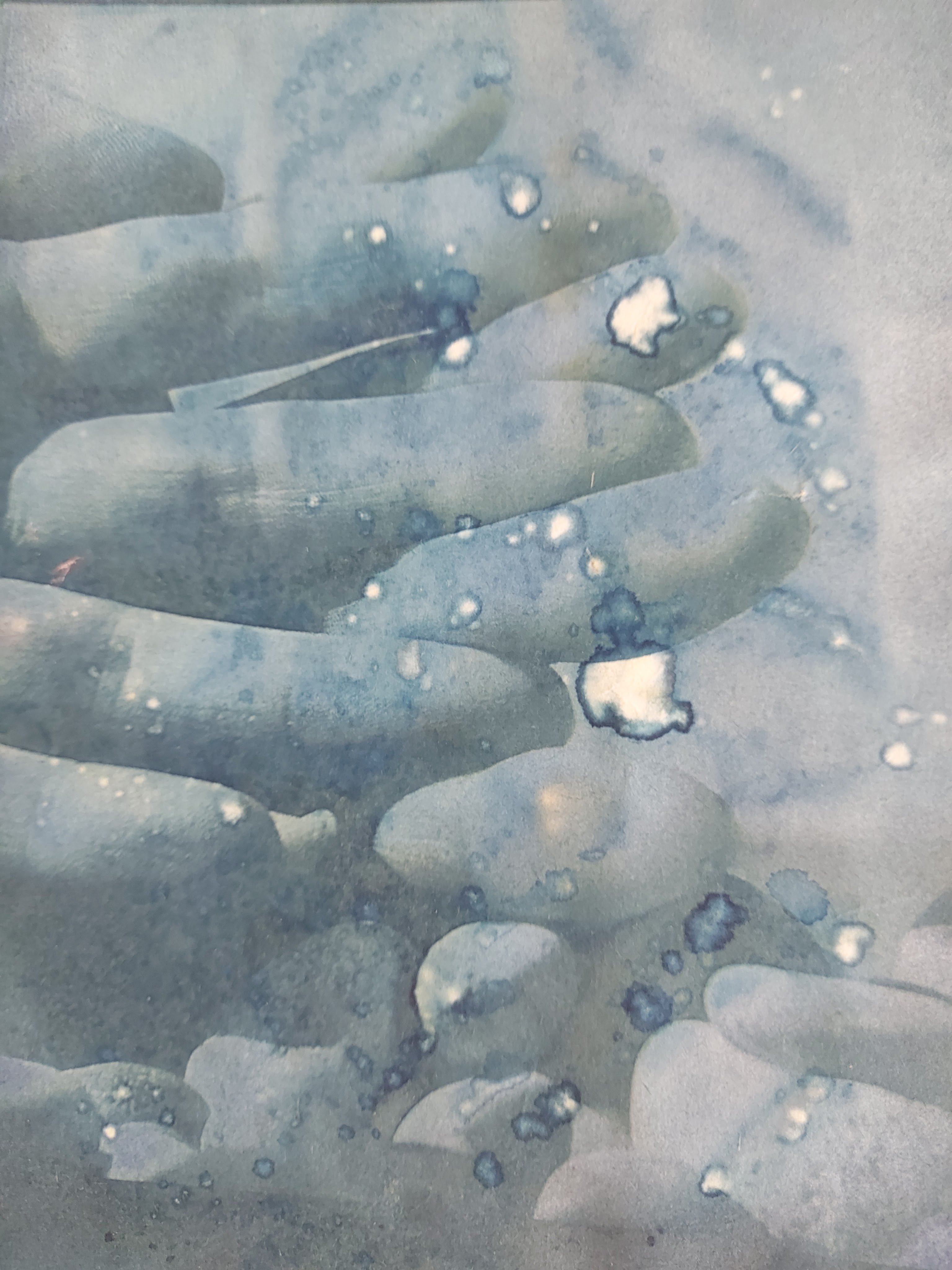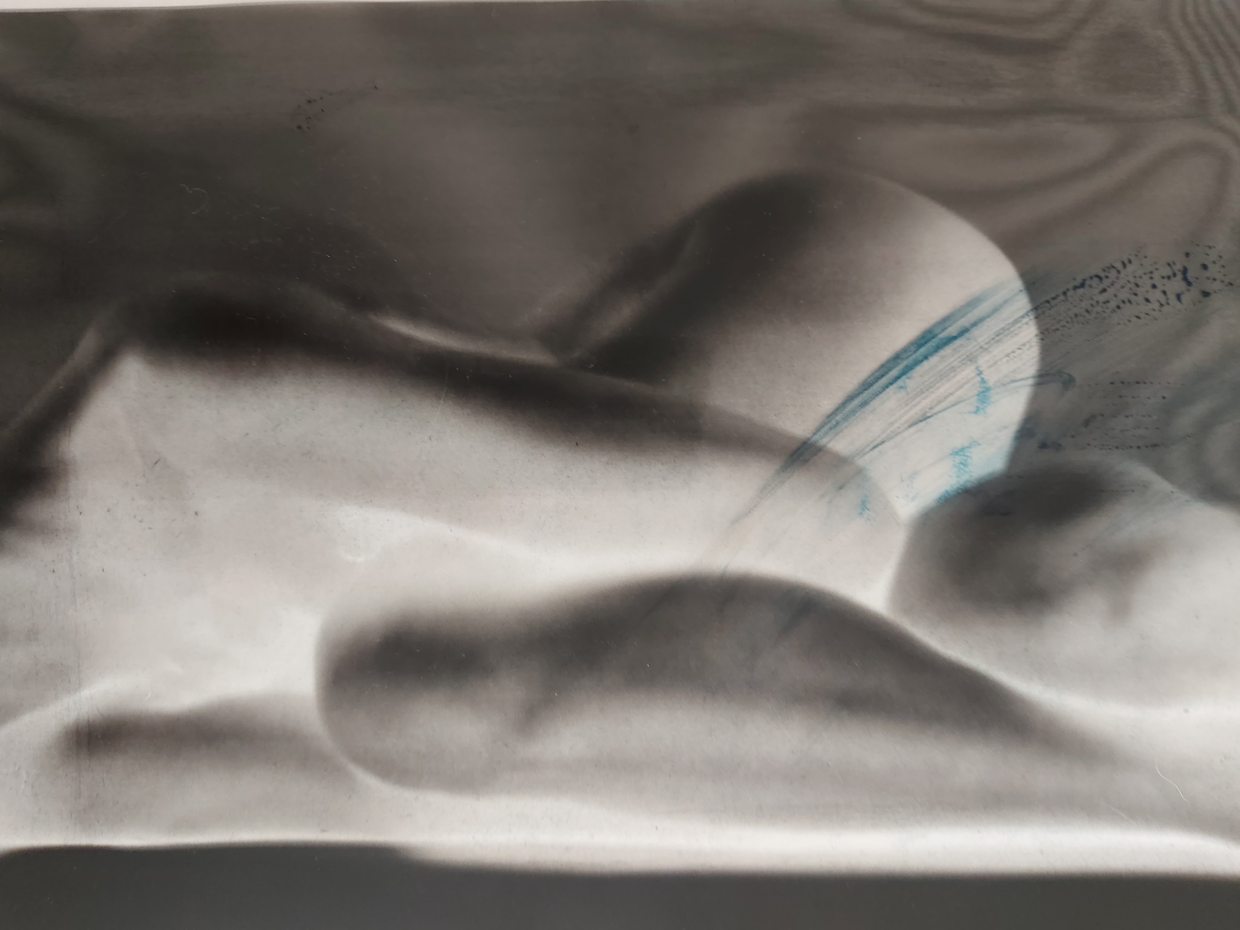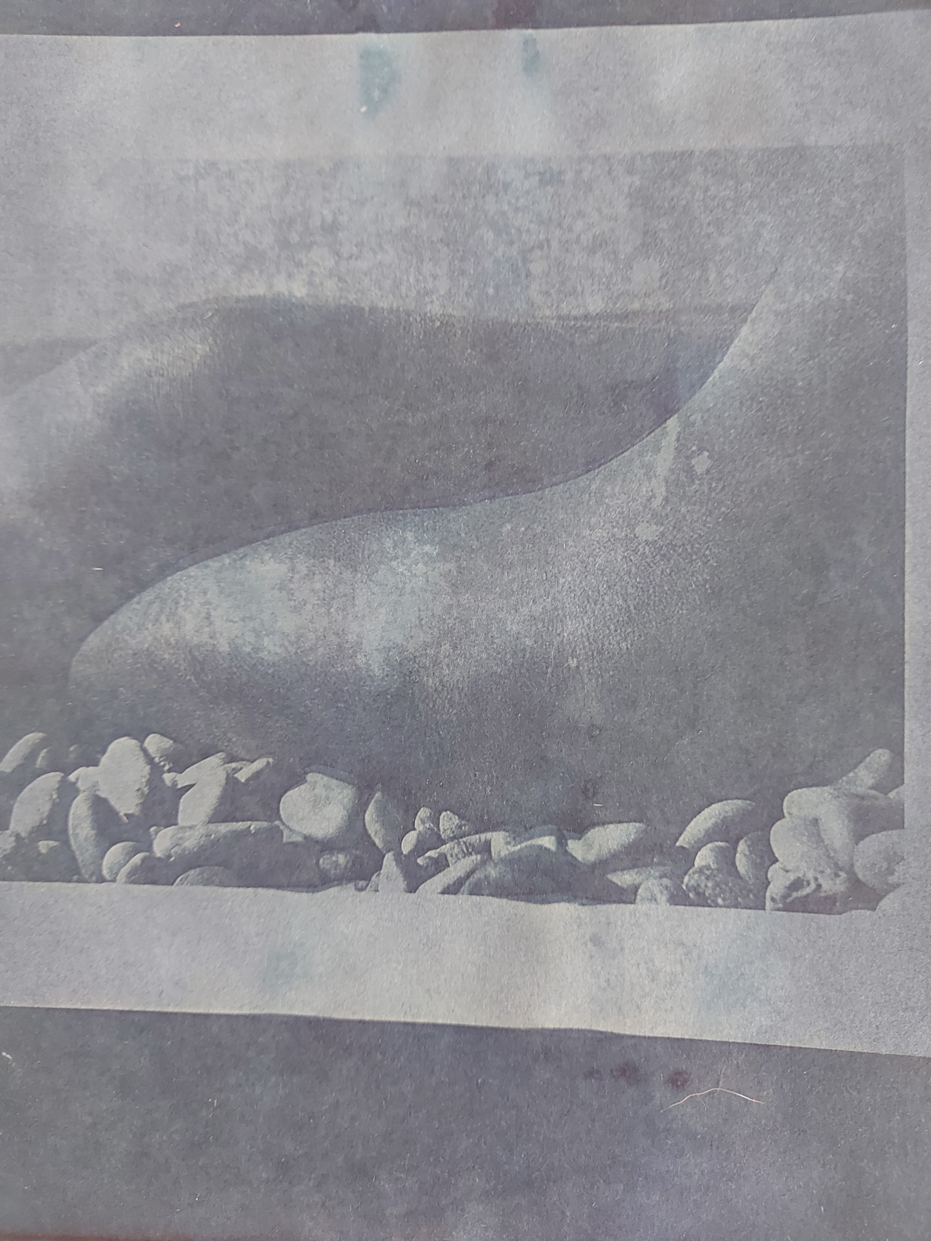 Up to this point the work was only about mastering the technique. I was never just interested in producing nature based cyanotypes. Therefore the experiments moved on to trying to create work with negatives. These were created from found images on the internet (OK mainly Bill Brandt) and converting them to negatives using Photoshop and printing on to acetate.